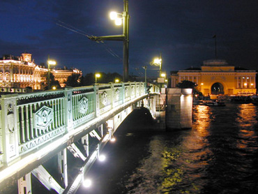 The Admiralty (the spire in the foreground), was founded by Peter the Great in 1704 to be a fortified shipyard in the hopes that it would build his Navy as Peter hoped to dominate Europe from the Gulf of Finland. It stands on the western end of Nevskiy Prospekt. The Admiralty is currently occupied by a Naval College. Behind the Admiralty, you can see the spire of the cathedral at Peter and Paul Fortress, the original military fort that founded St. Petersburg.